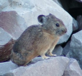 The Shasta PikaAt right is a picture of a pika (aka. cony, rock-rabbit, calling hare) Ochotona, that lives on Mt. Shasta. Pikas are related to rabbits and are rarely seen by hikers on the mountain because they mostly live at timberline and are very inconspicuous. On Mount Shasta, unlike most localities, they make very little noise. I have been mapping their distribution on the mountain to compare with some hundred-year-old records. In the intermountain west pika populations are dwindling. This is probably due to global warming. I am interested to see if the same pattern is present on Mt. Shasta. Visit www.shastapika.org for more information and my results. |